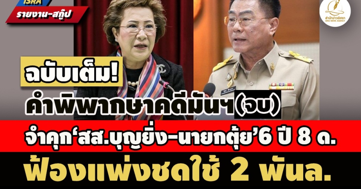 - ศาลพิพากษาคดีมันฯ สั่งจำคุก 'นายกฯตุ้ย- สส.บุญยิ่ง'คนละ 6 ปี 8 ด. - 'มนัส' โดน 10 ปี