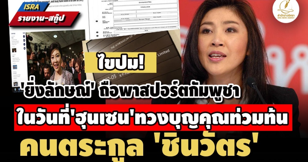 - สื่อฮ่องกงโชว์หลักฐาน 'ยิ่งลักษณ์' ถือพาสปอร์ตกัมพูชา นั่งบริหาร บ.ย่านจิมซาจุ่ย