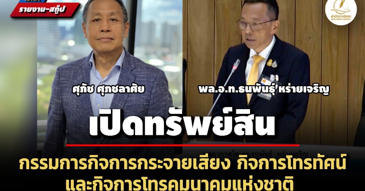 สำนักข่าวอิศรา (www.isranews.org) รายงานว่า เมื่อเร็ว ๆ นี้ สำนักงานคณะกรรมการการป้องกันและปราบการทุจริตแห่งชาติ (ป.ป.ช.) เปิดเผยบัญชีแสดงรายการทรัพย์สินและหนี้สินผู้ดำรงตำแหน่ง กรรมการกิจการกระจายเสียง กิจการโทรทัศน์และกิจการโทรคมนาคมแห่งชาติ (กสทช.) กรณีทุกสามปีตลอดเวลาที่ยังดำรงตำแหน่งเป็นเจ้าหน้าที่ของรัฐ เมื่อวันที่ 13 เม.ย. 2568 จำนวน 2 ราย ได้แก่