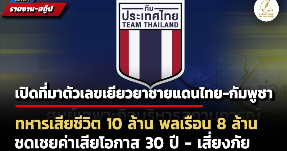 หมายเหตุ : สำนักข่าวอิศรา (www.isranews.org) เมื่อวันที่ 5 สิงหาคม 2568 ที่ประชุมคณะรัฐมนตรี (ครม.) มีมติกรอบอัตราเยียวยาผู้ได้รับผลกระทบจากกรณีเหตุการณ์สถานการณ์บริเวณชายแดนไทย – กัมพูชา นับตั้งแต่วันที่ 16 ก.ค. 2568 จนกว่าสถานการณ์จะเข้าสู่ภาวะปกติ ประกอบด้วย เจ้าหน้าที่รัฐ เช่น ทหาร ทหารพราน ตำรวจตระเวนชายแดน (ตชด.) เสียชีวิตและทุพพลภาพ 10 ล้านบาท บาดเจ็บสาหัส 1 ล้านบาท บาดเจ็บมาก 5 แสนบาท กับ ประชาชน เสียชีวิตและทุพพลภาพ 8 ล้านบาท บาดเจ็บสาหัส 8 แสนบาท บาดเจ็บมาก 4 แสนบาท
