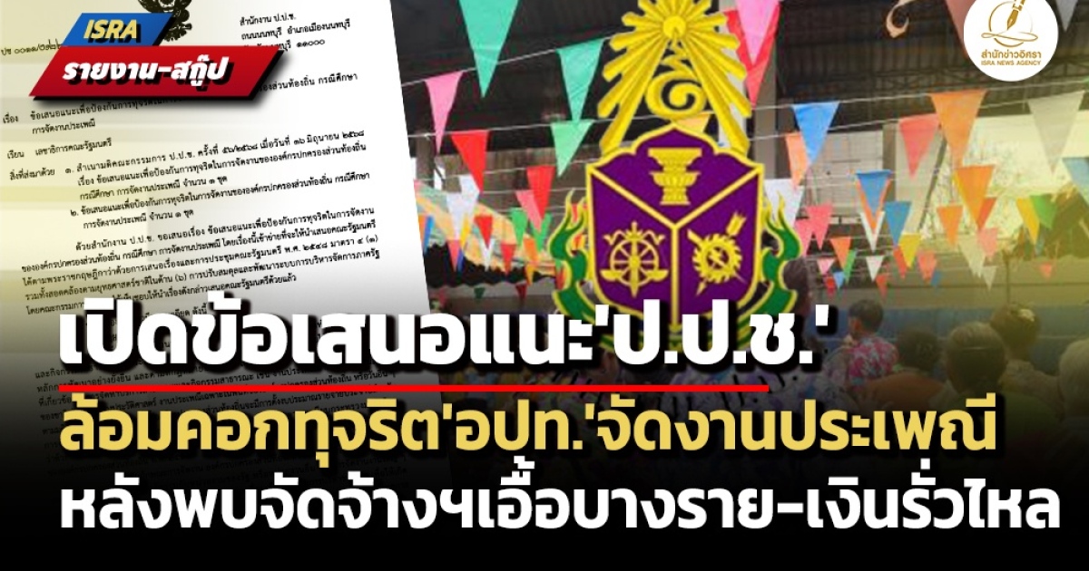 สำนักข่าวอิศรา (www.isranews.org) จึงขอนำเสนอ ‘ที่มา’ และ 'สาระสำคัญ' ของข้อเสนอแนะเพื่อป้องกันการทุจริตในการจัดงานขององค์กรปกครองส่วนท้องถิ่น กรณีศึกษาการจัดงานประเพณี ของ ป.ป.ช. ดังนี้