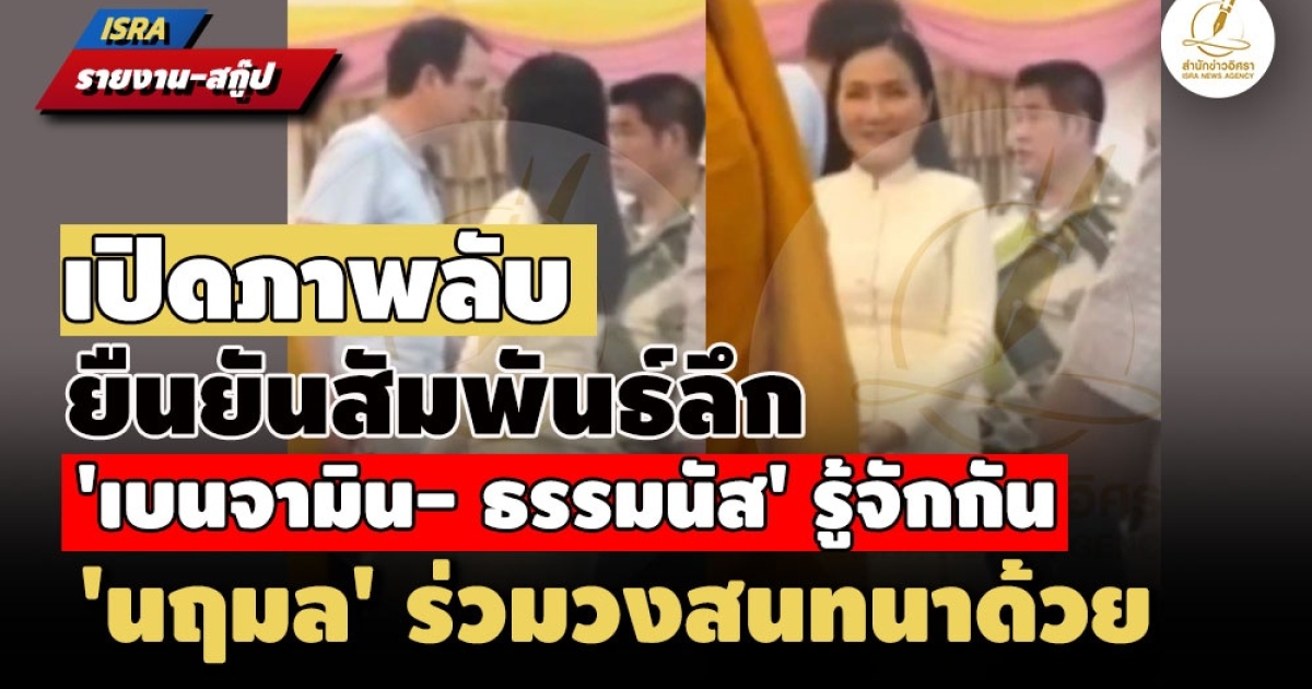 "...ล่าสุด สำนักข่าวอิศรา ได้รับการยืนยันข้อมูลหลักฐานภาพถ่าย นายเบนจามิน ระหว่างไปร่วมงานทำบุญน้อมถวายมุทิตาสักการะ อายุวัฒนะมงคล 47 ปี พระอาจารย์ภัทระ มหาลาโภ (พระอาจารย์บรีส) ณ วัดดวงแข กรุงเทพมหานคร เพิ่มเติม ซึ่งเป็นภาพที่ นายเบนจามิน ยืนพูดคุยกับ ร.อ.ธรรมนัส และมี นางนฤมล ภิญโญสินวัฒน์ อดีตรัฐมนตรีว่าการกระทรวงศึกษาธิการ ในรัฐบาลแพทองธาร ชินวัตร ยืนรวมวงสนทนาอยู่ด้วย..."