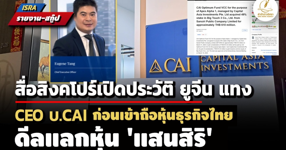 "...ตามบันทึกออนไลน์ เมื่อวันที่ 31 มีนาคม 2568 บริษัท CAI ได้จ่ายเงินจำนวน 610 ล้านบาท (18.85 ล้านดอลลาร์สหรัฐฯ) ผ่านกองทุน Optimum Fund VCC ให้แก่บริษัท แสนสิริ จำกัด (มหาชน) หนึ่งในผู้พัฒนาอสังหาริมทรัพย์รายใหญ่ที่สุดของประเทศไทย เพื่อแลกกับหุ้น 49% ในบริษัท บิ๊กทัช 3 จำกัด (Big Touch 3 Co. Ltd) ซึ่งเป็นบริษัทย่อยของแสนสิริ หนึ่งในผู้ร่วมก่อตั้งแสนสิริคือ นายเศรษฐา ทวีสิน มหาเศรษฐีพันล้าน และอดีตนายกรัฐมนตรีไทย ซึ่งถูกศาลรัฐธรรมนูญตัดสินให้พ้นจากตำแหน่งในเดือนสิงหาคม 2567 และถูกแทนที่โดย น.ส.แพทองธาร บุตรสาวของทักษิณ ชินวัตร การที่แสนสิริร่วมมือกับ CAI ผ่านธุรกรรมหุ้นดังกล่าวไม่ได้มีลักษณะเป็นการกระทำผิดกฏหมายหรือผิดจรรยาบรรณใดๆ ทั้งสิ้น..."