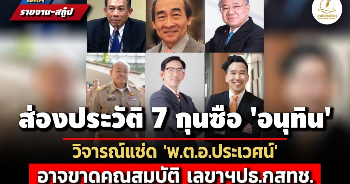 ISRA-SPECIAL : เมื่อวันที่ 1 ต.ค. 2568 นายอนุทิน ชาญวีรกูล นายกรัฐมนตรีมีคำสั่งเรื่อง แต่งตั้งที่ปรึกษาของนายกรัฐมนตรี เพื่อทำหน้าที่ให้คำปรึกษาและพิจารณาเสนอความเห็นหรือข้อเสนอแนะต่าง ๆ ตามที่นายกรัฐมนตรีมอบหมาย 7 ราย ได้แก่