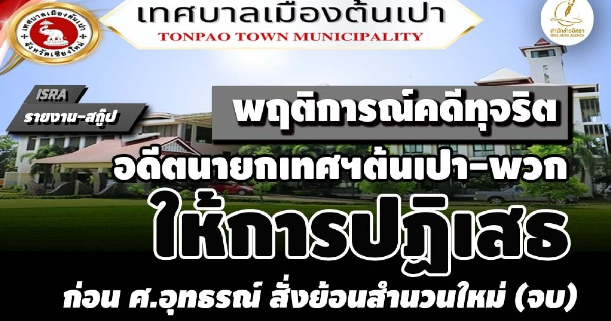 - ศ.อุทธรณ์ สั่งย้อนสำนวนใหม่ คดีอดีตนายกเทศฯต้นเปา-พวก ทุจริตโครงการส่งเสริมผู้ประกอบการ