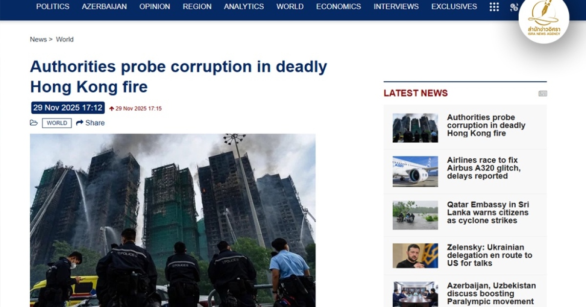 ส่องคดีทุจริตโลก สำนักข่าวอิศรา (www.isranews.org) สัปดาห์นี้ขอนำเสนอความไม่โปร่งใสซึ่งเชื่อมโยงไปถึงเหตุเพลิงไหม้อาคารสูงหลายแห่งที่เกาะฮ่องกง จนเป็นเหตุทำให้มีผู้เสียชีวิตนับร้อยราย