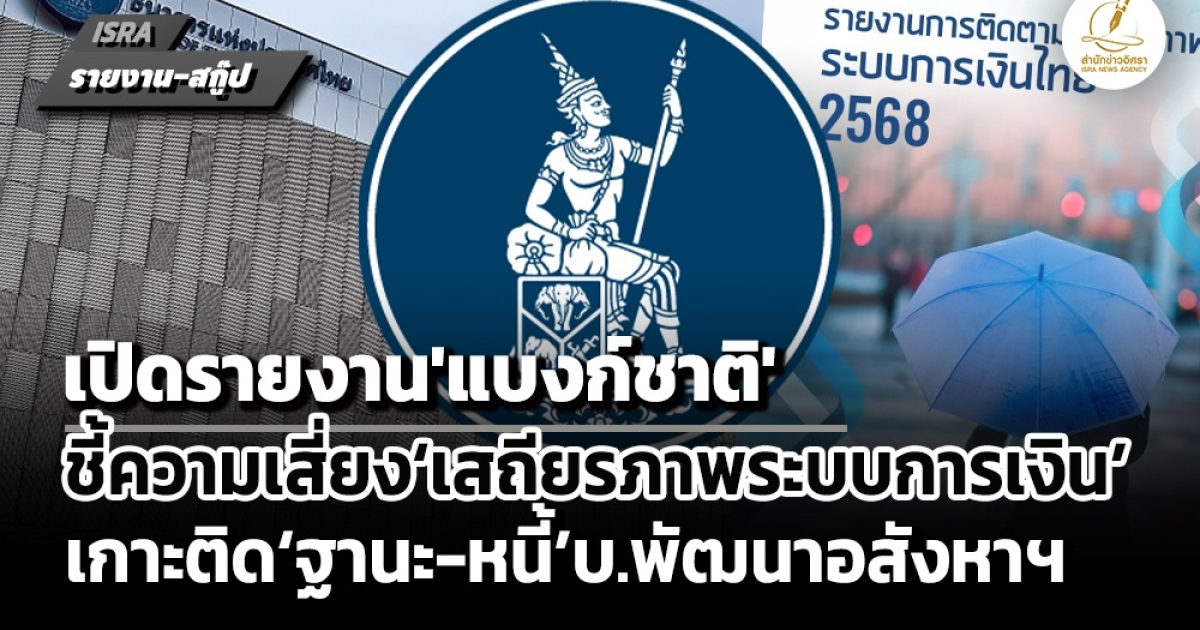 เมื่อวันที่ 24 ธ.ค. ธนาคารแห่งประเทศไทย (ธปท.) เผยแพร่รายงาน ‘การติดตามเสถียรภาพระบบการเงินไทยประจำปี 2568’ โดยรายงานฯฉบับนี้ ได้ชี้ถึงประเด็น ‘ความเสี่ยง’ ด้านเสถียรภาพระบบการเงิน ในระยะข้างหน้า ตลอดจนการนโยบายเพื่อรักษาเสถียรภาพระบบการเงินในช่วงที่ผ่านมา และมาตรการระยะยาวที่อยู่ระหว่างการผลักดัน
