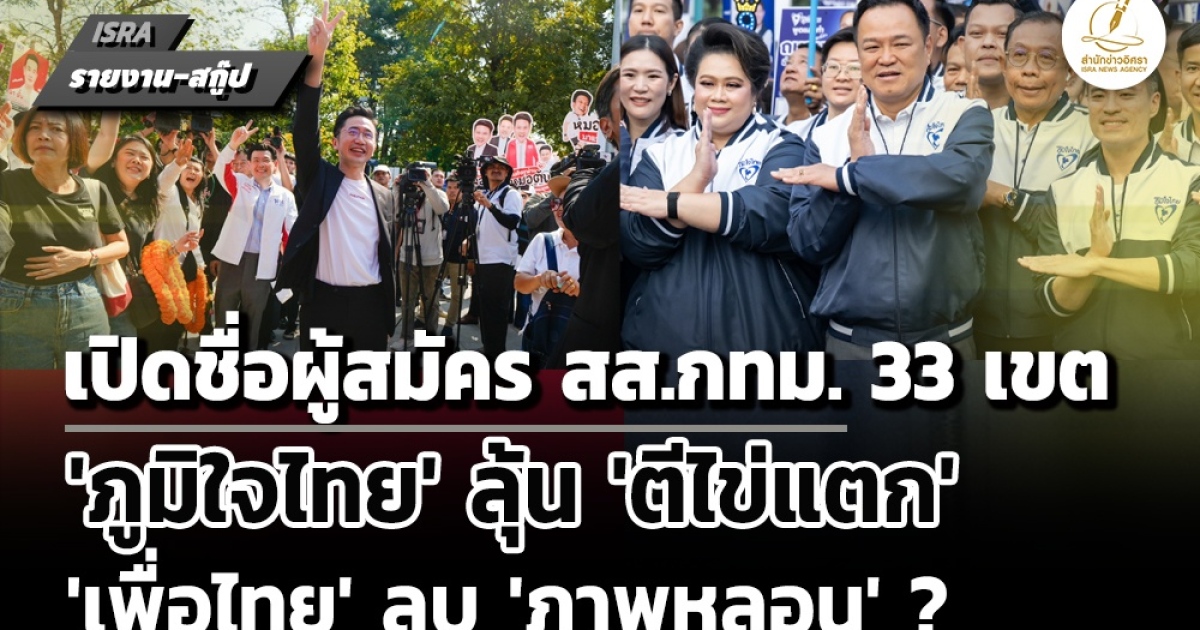 สำนักข่าวอิศรา (www.isranews.org) ได้รายงานรายชื่อผู้สมัคร สส.ระบบเขต จังหวัดกรุงเทพมหานคร (กทม.) ไปแล้ว 2 พรรค คือ พรรคประชาชน (ปชน.) กับ พรรคประชาธิปัตย์ (ปชน.) ในคราวนี้ขอเสนอเพิ่มเติมอีก 2 พรรคการเมืองที่จะเป็น ‘คู่แข่ง’ ในการเลือกตั้งครั้งนี้ คือ พรรคเพื่อไทย (พท.) กับ พรรคภูมิใจไทย (ภท.)