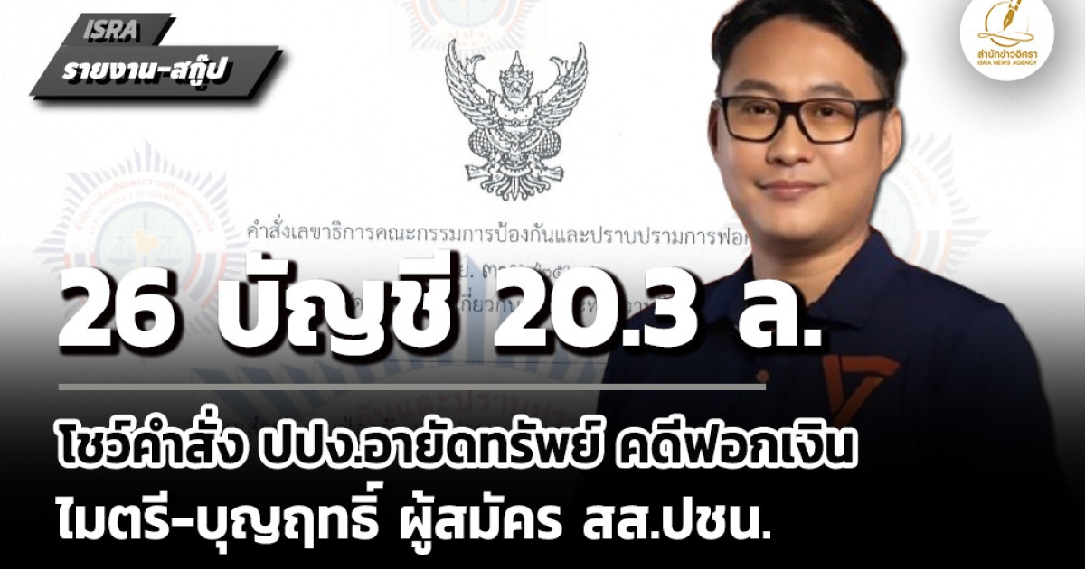 เปิดคำสั่ง ปปง.อายัดทรัพย์ คดีความผิดยาเสพติด-ฐานฟอกเงิน 'ไมตรี-บุญฤทธิ์ ผู้สมัคร สส.ปชน. เครือข่าย เงินฝาก 26 บัญชี 20.3 ล. ในชื่อบุคคล-บริษัท มีคนต่างชาติด้วย