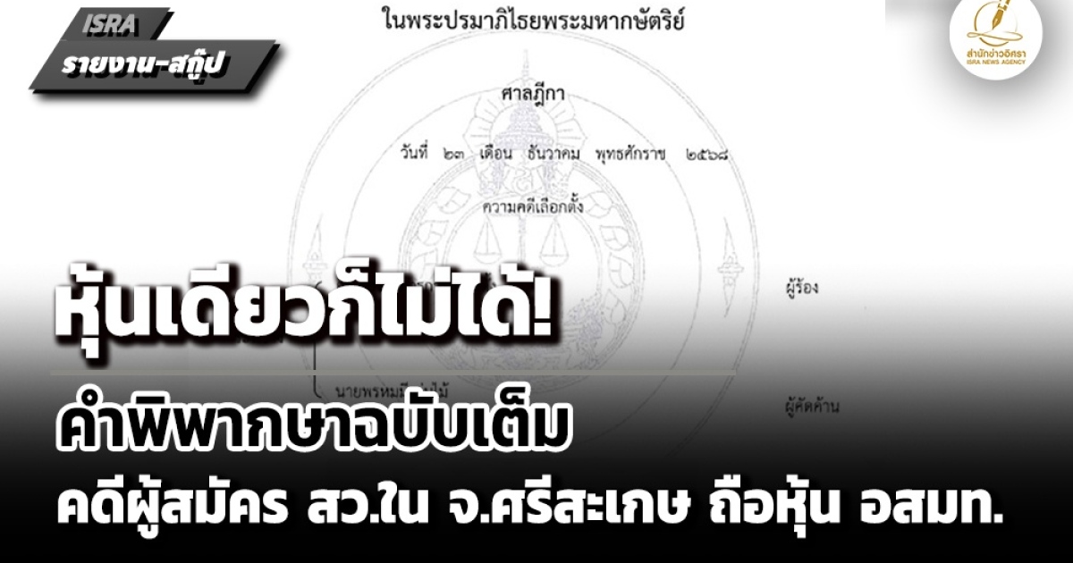 รายที่ 2! ศาลฎีกาเพิกถอนสิทธิฯ 10 ปี ผู้สมัคร สว.ระดับอำเภอ จ.ศรีสะเกษ ถือหุ้น อสมท. (26)