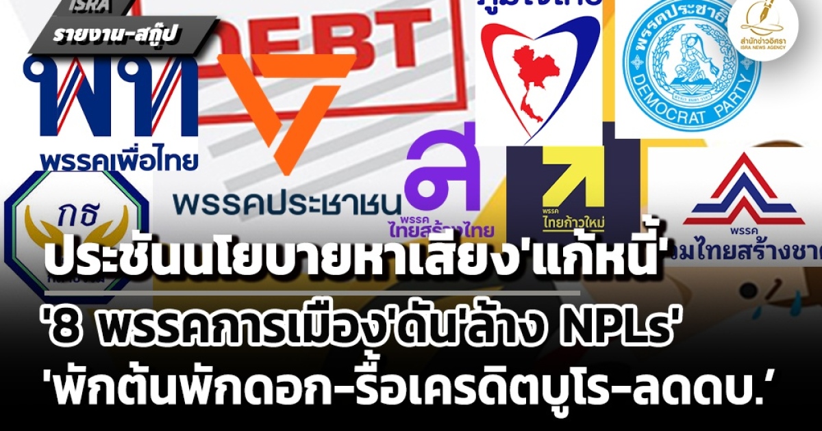 ด้วยเหตุนี้ ในการเลือกตั้งฯ 8 ก.พ.2569 บรรดาพรรคการเมืองต่างๆ ได้นำเสนอนโยบายในการแก้ปัญหา ‘หนี้สินครัวเรือน’ อย่างหลากหลายด้าน สำนักข่าวอิศรา (www.isranews.org) จึงรวบรวมนโยบายหาเสียงของ 8 พรรคการเมือง ในด้านการแก้ปัญหาหนี้สินของประชาชน มานำเสนอ ดังนี้