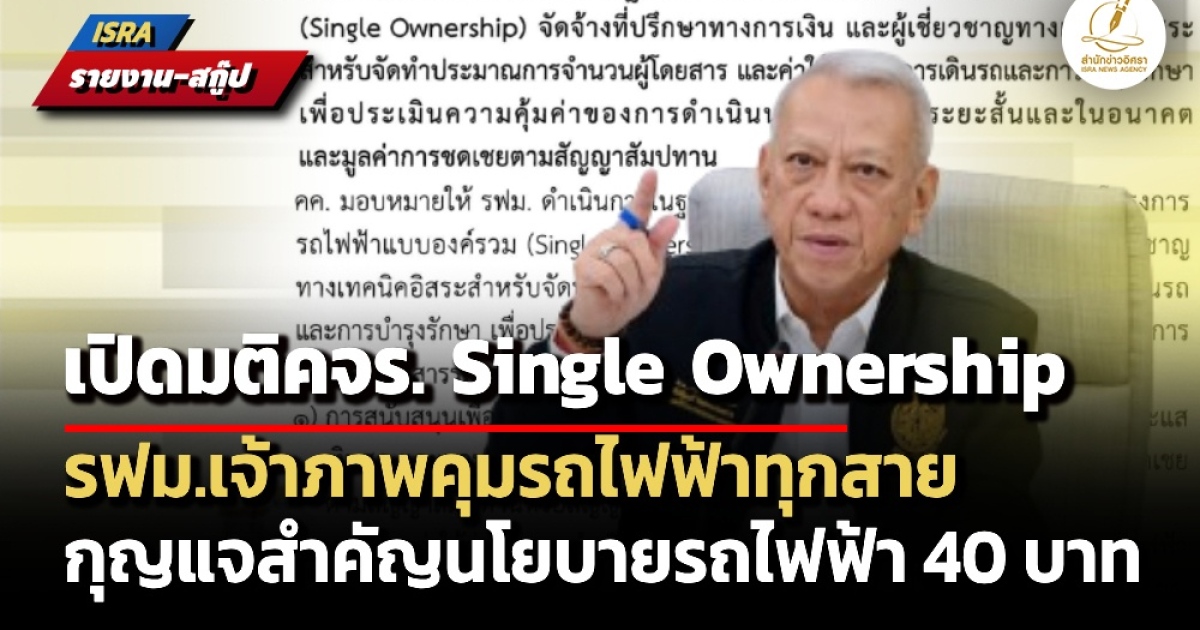 ข้างต้น คือ ทั้งหมดของการผลักดันแนวคิด Single Ownership หนึ่งในกุญแจสำคัญในการไปต่อของนโยบายรถไฟฟ้า 40 บาทภายใต้ร่มธงพรรคภูมิใจไทย