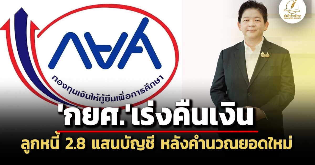‘กยศ.’เผยปรับปรุงยอดหนี้ ‘ลูกหนี้ กยศ.’ 3.8 ล้านบัญชี คงเหลือ ‘ลูกหนี้’ ที่ยังมีหนี้ 3.5 ล้านราย มีผู้ได้รับเงินคืน 2.8 แสนบัญชี พร้อมส่ง SMS แจ้งลูกหนี้ตรวจสอบสถานะบัญชี