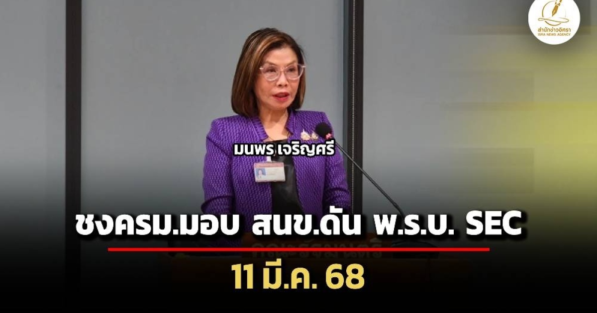 'มนพร’ เผย ‘คมนาคม' เตรียมเสนอ ครม. มอบอำนาจ สนข.เป็นผู้ผลักดัน ร่าง พ.ร.บ. SEC สัปดาห์หน้า (11 มี.ค. 68) หลังสภาพัฒน์-กฤษฎีกา เห็นแล้วควรให้ ‘คมนาคม' เป็นผู้เสนอให้ สนข. มีอำนาจผลักดัน