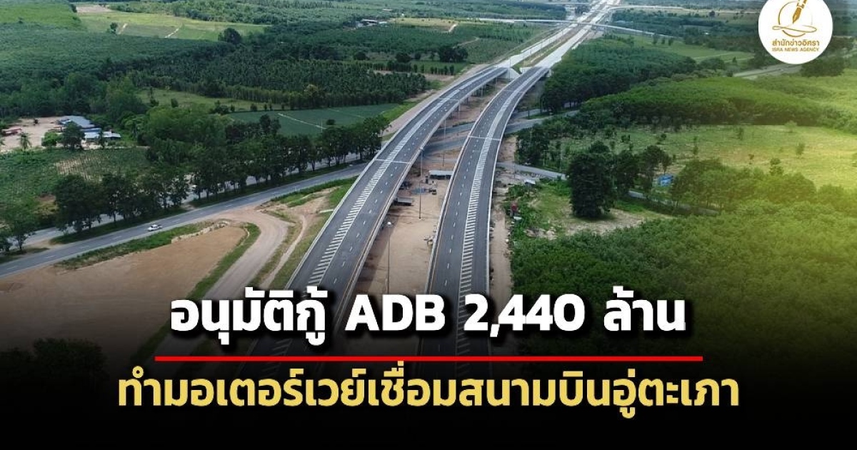 ครม.อนุมัติ 'คลัง‘ กู้ธนาคาร ADB วงเงิน 2,440 ล้านบาท สร้างมอเตอร์เวย์สาย 7 เชื่อมเข้าสนามบินอู่ตะเภา เว้นค่าเวนคืนใช้งบประมาณปกติ คาดก่อสร้างแล้วเสร็จในปี 2572
