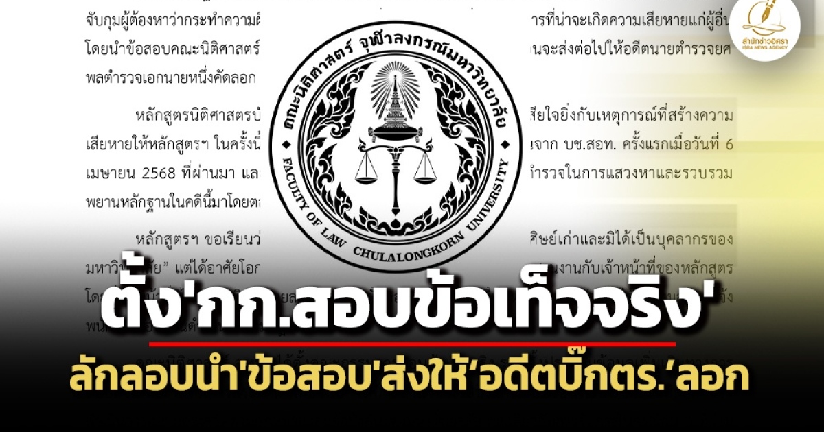 ‘คณะนิติศาสตร์ จุฬาฯ’ ตั้ง ‘กรรมการสอบข้อเท็จจริงฯ’ กรณีลักลอบนำข้อสอบ ส่งให้ ‘อดีตบิ๊กตร.’ ลอก ระบุผู้กระทำผิด ‘มิใช่ศิษย์เก่า-บุคลากรของมหาวิทยาลัย’