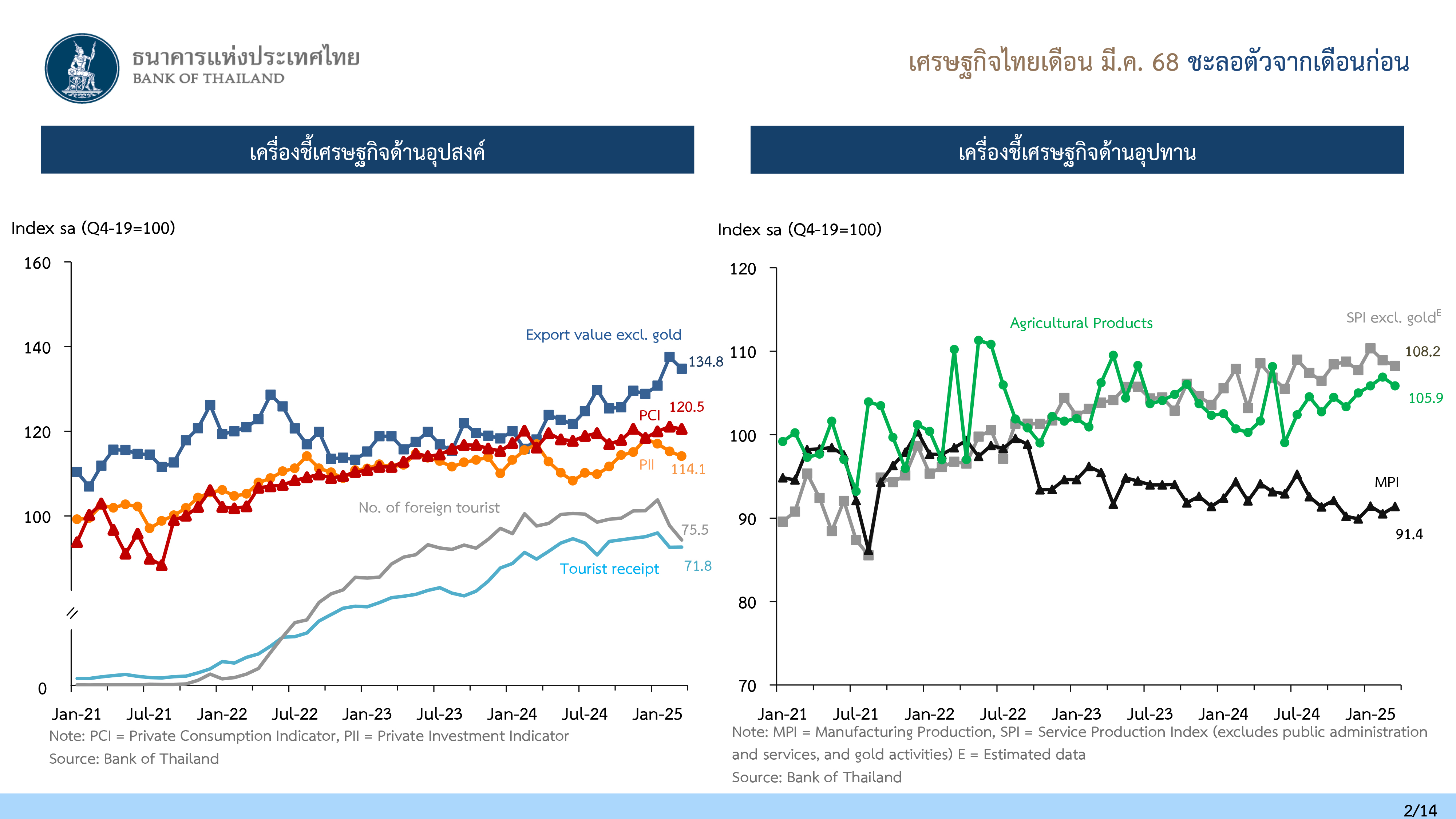 ‘ธปท.’ เผยเศรษฐกิจไทย มี.ค.68 ชะลอตัวจากเดือนก่อน หลัง ‘ส่งออก-ท่องเที่ยว-บริโภค-ลงทุน’ แผ่ว ขณะที่ ‘ตลาดอสังหาริมทรัพย์’ ไตรมาสที่ 1/68 ชะลอ