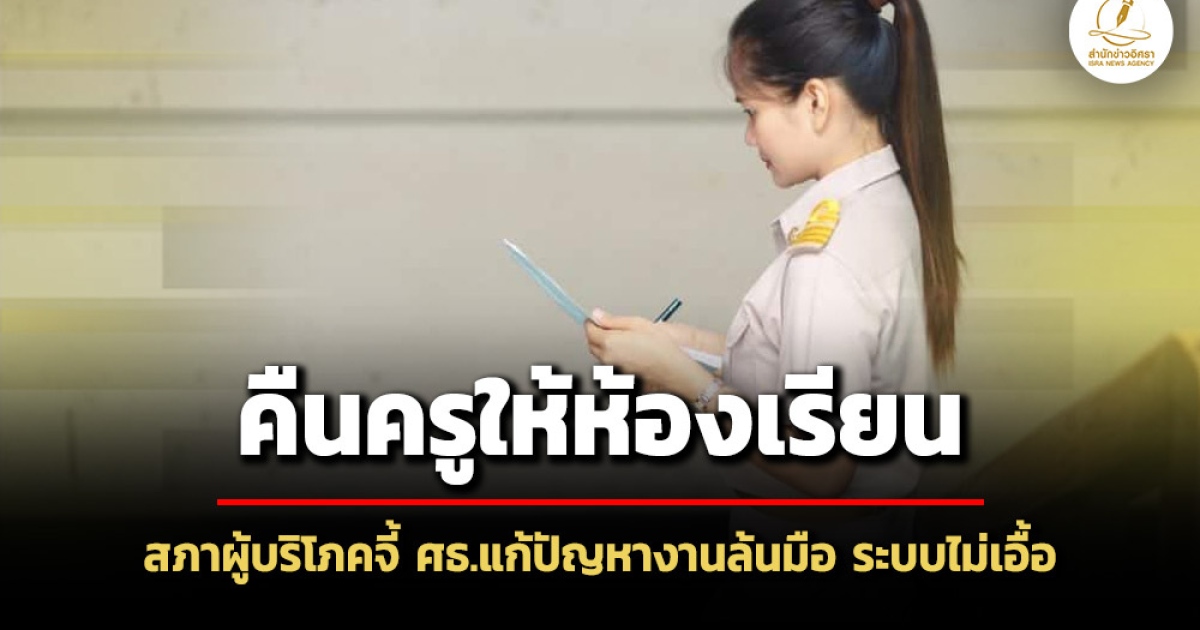 สภาผู้บริโภค เผยวิกฤตครูไทย ภาระงานล้นมือ ระบบไม่เอื้อ ชี้ ศธ.ต้องเร่งแก้ระบบงาน จัดสรรบุคลากรให้เหมาะสม ถึงเวลาคืนครูให้ห้องเรียน