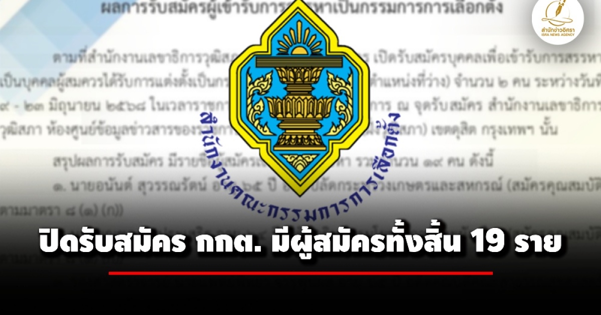 สำนักงานเลขาธิการวุฒิสภา ปิดรับสมัคร กกต. มีผู้สมัครทั้งสิ้น 19 ราย