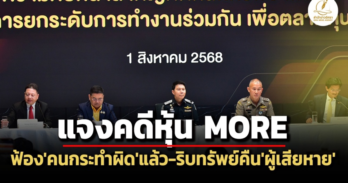 ‘ดีเอสไอ’ แจงความคืบหน้าคดีหุ้น MORE ฟ้องคดีอาญา ‘ผู้ร่วมกระทำความผิด’ แล้ว ริบทรัพย์ตกเป็นของแผ่นดิน-เฉลี่ยคืน ‘ผู้เสียหาย’