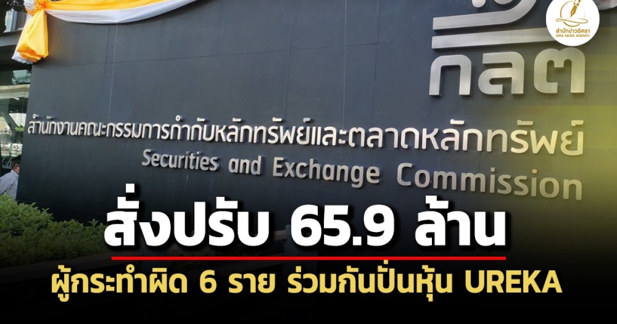 เมื่อวันที่ 1 ส.ค. สำนักงานคณะกรรมการกำกับหลักทรัพย์และตลาดหลักทรัพย์ (ก.ล.ต.) เปิดเผยการดำเนินคดีด้วยมาตรการลงโทษทางแพ่งกับผู้กระทำความผิด 6 ราย กรณีร่วมกันสร้างราคาหรือปริมาณการซื้อขายหุ้นบริษัท ยูเรกา ดีไซน์ จำกัด (มหาชน) (UREKA) โดยเรียกให้ชำระเงินตามมาตรการลงโทษทางแพ่งรวม 65,946,478 บาท พร้อมทั้งกำหนดระยะเวลาห้ามซื้อขายหลักทรัพย์และสัญญาซื้อขายล่วงหน้า และห้ามเป็นกรรมการหรือผู้บริหาร