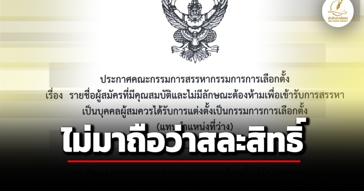 - ประกาศรับสมัคร กรรมการ กกต. 2 ตำแหน่ง แทน ‘อิทธิพร-สันทัด’ ครบวาระ