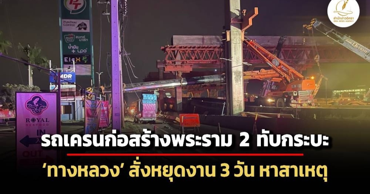 รถเครนขนวัสดุก่อสร้างโครงการพระราม 2 ล้มทับกระบะ เจ็บ 3 ราย ‘กรมทางหลวง’ สั่งหยุดงาน 3 วัน สอบสาเหตุ พบรับเหมา ‘กรุงธนเอนยิเนียร์