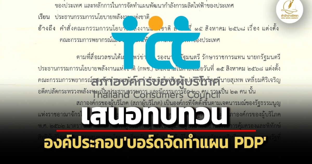 เมื่อวันที่ 11 ก.ย. นายพชร แกล้วกล้า ผู้ช่วยเลขานุการคณะอนุกรรมการด้านบริการสาธารณะ พลังงาน และสิ่งแวดล้อม สภาองค์กรของผู้บริโภค เปิดเผยว่า สภาผู้บริโภคได้ส่งหนังสือถึงประธานกรรมการนโยบายพลังงานแห่งชาติ (กพช.) เพื่อขอให้ทบทวนองค์ประกอบของคณะกรรมการฯ และหลักการในการจัดทำแผนพัฒนากำลังผลิตไฟฟ้าของประเทศ (แผน PDP) ฉบับใหม่ ที่มีนายสุเทพ เหลี่ยมศิริเจริญ อดีตปลัดกระทรวงพลังงาน เป็นประธานกรรมการ