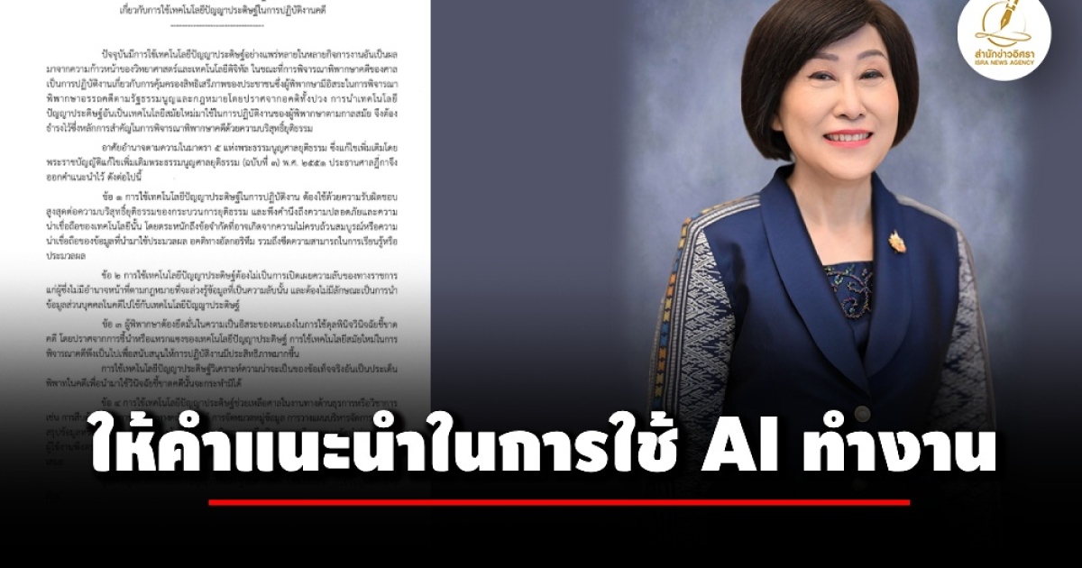 สำนักข่าวอิศรา (www.isranews.org) รายงานว่า เมื่อวันที่ 22 ก.ย. 2568 นางชนากานต์ ธีรเวชพลกุล ประธานศาลฎีกา ให้คำแนะนำของประธานศาลฎีกา เกี่ยวกับการใช้เทคโนโลยีปัญญาประดิษฐ์ในการปฏิบัติงานคดี