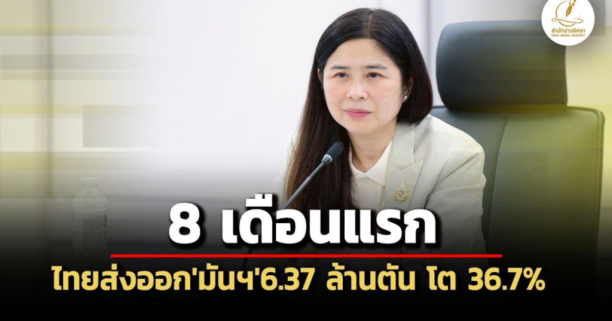 เมื่อวันที่ 29 ก.ย. นางอารดา เฟื่องทอง อธิบดีกรมการค้าต่างประเทศ (คต.) กระทรวงพาณิชย์ เปิดเผยถึงสถานการณ์การส่งออกสินค้ามันสำปะหลังไทยในช่วง ม.ค.-ส.ค.2568 ว่า ในช่วง 8 เดือนของปี 2568 ไทยมีปริมาณการส่งออกรวม 6.37 ล้านตัน เพิ่มขึ้น 36.7% เมื่อเทียบกับช่วงเดียวกันของปีก่อนที่มีการส่งออกเพียง 4.66 ล้านตัน แสดงให้เห็นถึงสถานการณ์การส่งออกสินค้ามันสำปะหลังของไทยที่ขยายตัวได้มากขึ้นจากความต้องการมันสำปะหลังไทยในตลาดต่างประเทศ