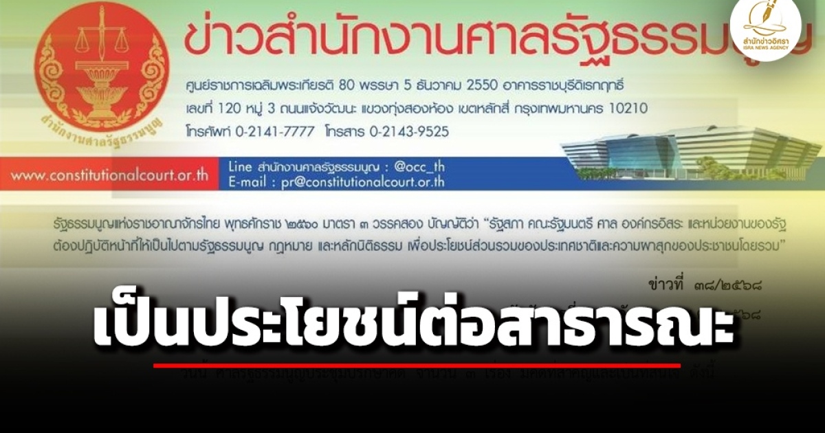 ศาลรัฐธรรมนูญ มีมติเสียงข้างมาก 6 ต่อ 2 เสียง เดินหน้าวินิจฉัยคำร้อง ภูมิธรรม เวชยชัย อดีตรองนายกฯ และ รมว.มหาดไทย - พ.ต.อ.ทวี สอดส่อง อดีตรมว.ยุติธรรม สมัยรัฐบาลแพทองธาร ชินวัตร แทรกแซงกรมสอบสวนคดีพิเศษ กรณีเลือกสมาชิกวุฒิสภา ชี้ พิจารณาคดีต่อไปจะเป็นประโยชน์ต่อสาธารณะ