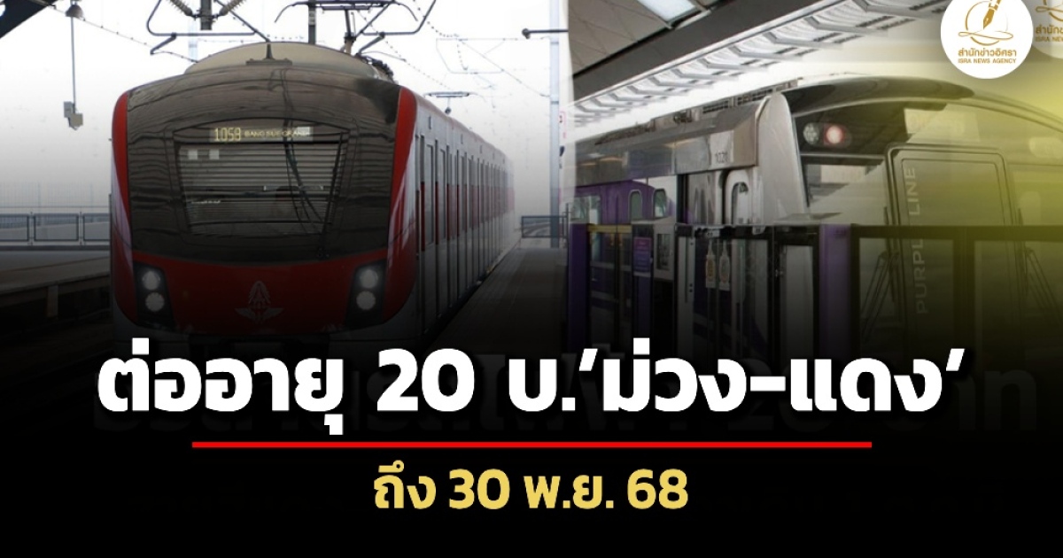 ครม.อนุมัติต่ออายุค่าโดยสารรถไฟฟ้าสายสีม่วง-แดง 20 บาทอีก 2 เดือน สิ้นสุด 30 พ.ย.นี้ นายกฯสั่งการหามาตรการไปต่อหรือพอแค่นี้