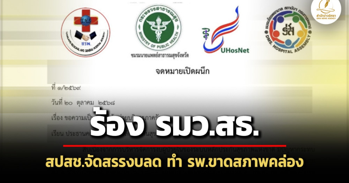 สำนักข่าวอิศรา (www.isranews.org) รายงานว่า เมื่อวันที่ 20 ตุลาคม 2568 ชมรมนายแพทย์สาธารณสุขจังหวัด ชมรมโรงพยาบาลศูนย์โรงพยาบาลทั่วไป ชมรมโรงพยาบาลสถาบันกรมการแพทย์ และ คณะกรรมการโรงพยาบาลในกลุ่ม สถาบันแพทย์แห่งประเทศไทยหรือ ยูฮอสเน็ต (Uhosnet) เตรียมประสานขอเข้าพบและยื่นหนังสือถึง นายพัฒนา พร้อมพัฒน์ รัฐมนตรีว่าการกระทรวงสาธารณสุข ในฐานะประธานคณะกรรมการหลักประกันสุขภาพแห่งชาติ(บอร์ดสปสช.) พร้อมทั้งร่วมลงนามในจดหมายเปิดผนึก เรื่อง ขอความเป็นธรรมให้หน่วยบริการภาครัฐ