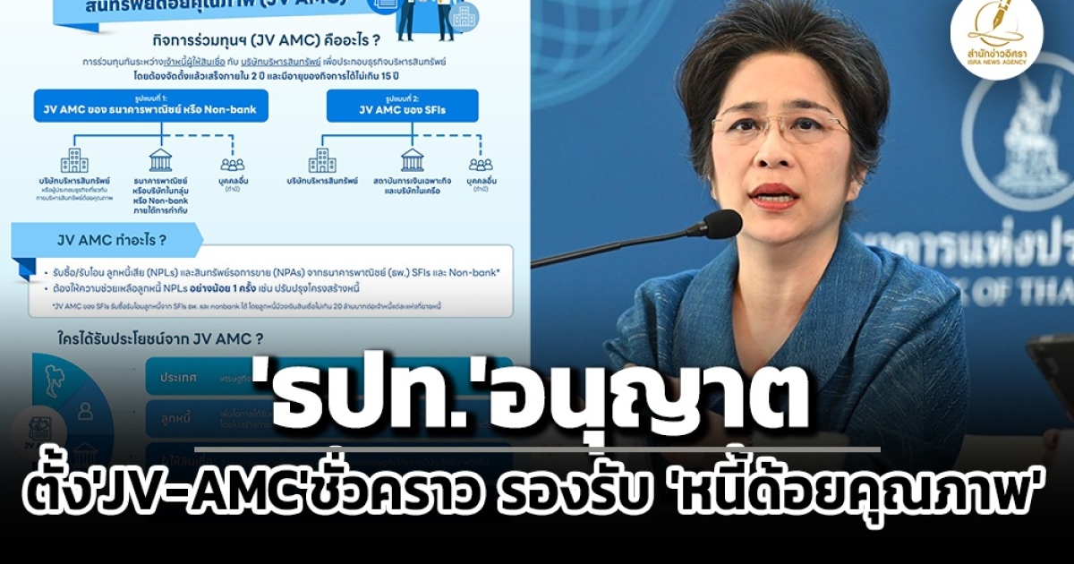 ‘ธปท.’ อนุญาต ‘ธนาคารพาณิชย์-SFIs-Non-bank’ ร่วมลงทุนกับ ‘บบส.-นิติบุคคลฯ’ ตั้ง 'JV AMC' เป็นการชั่วคราว รองรับ ‘สินทรัพย์ด้อยคุณภาพ’ ที่อาจทยอย 'เพิ่มขึ้น'