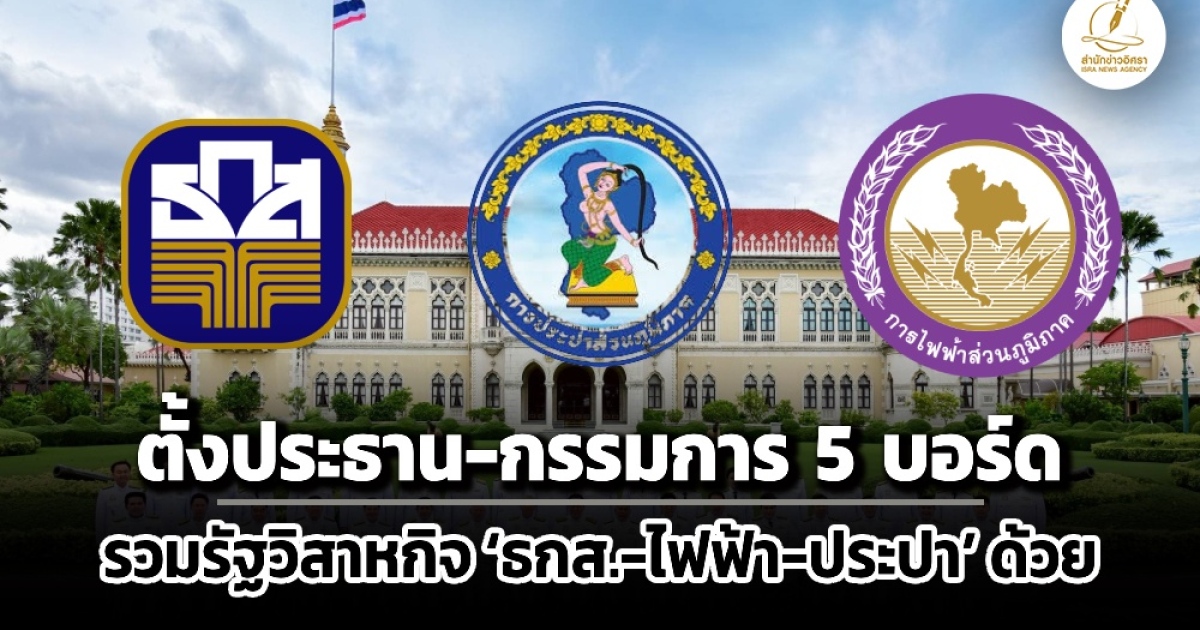 ครม.ตั้งประธาน-กรรมการ 5 บอร์ดสำคัญ มีรัฐวิสาหกิจ ‘ธกส.-ไฟฟ้า-ประปา’ ด้วย