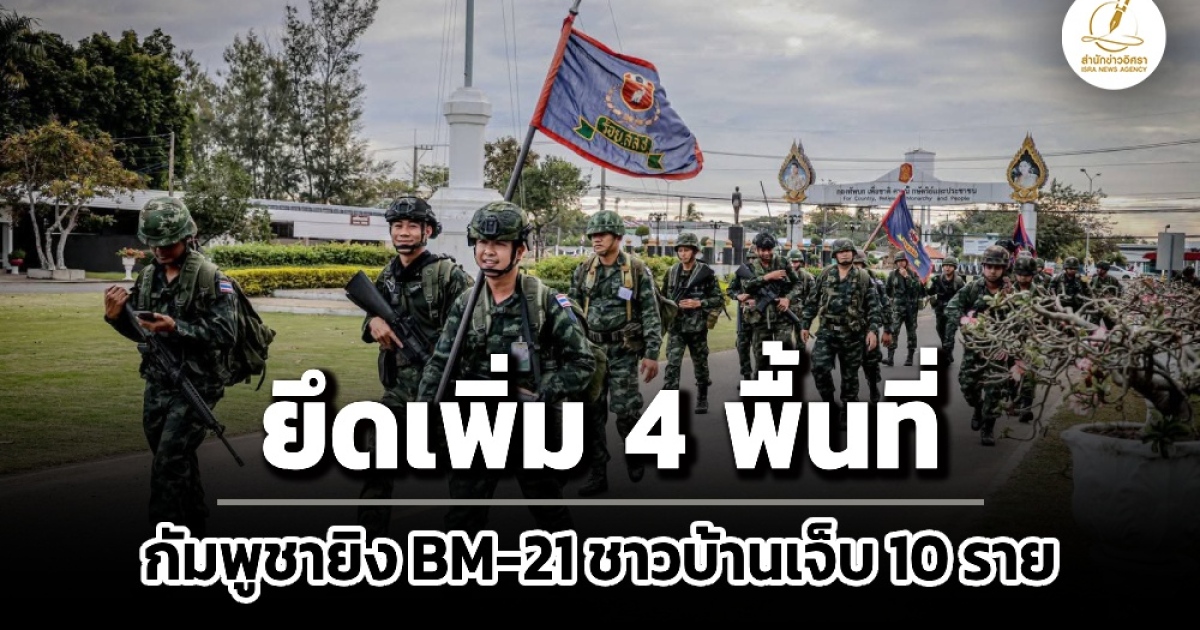 ทหารไทยรุกคืบยึดได้อีก 4 พื้นที่ เนิน 677, ช่องเปรอ, ช่องระยี, ช่องปลดต่าง, พื้นที่ซำแต กำลังเสริมความมั่นคง ณ ที่หมายช่องคนา ด้านกัมพูชายังยิง BM-21 ต่อ ทำชาวบ้านบาดเจ็บ 10 ราย ทบ.ขอประชาชนอย่าเพิ่งกลับภูมิลำเนา
