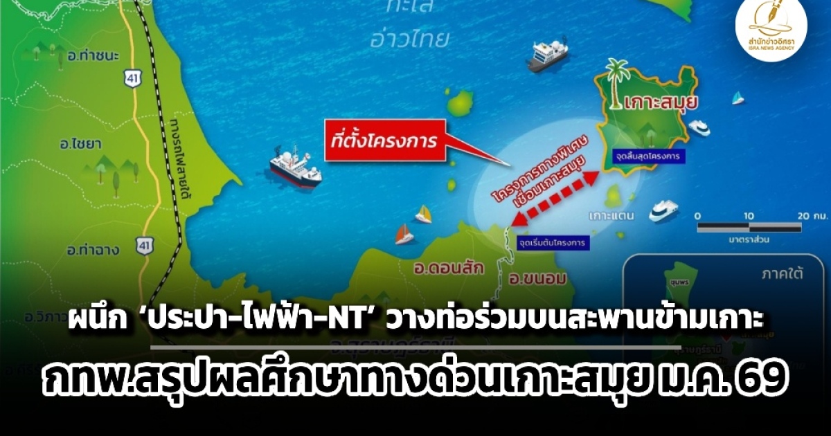 กทพ.จ่อสรุปผลการศึกษาทางด่วนเกาะสมุย ม.ค. 69 ก่อนชงครม.ปลายปีเดียวกัน มุ่งก่อสร้างปี 72 ร่วมมือ ‘ประปา-ไฟฟ้า-NT’ วางท่อร่วมบนโครงสร้างสะพานข้ามเกาะ ด้าน ‘พิพัฒน์’ โชว์หลากไอเดียรับโครงการ