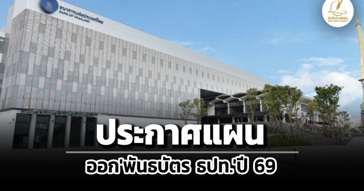 ‘แบงก์ชาติ’ ประกาศแผนออก ‘พันธบัตร ธปท.’ ปี 69 ปรับเพิ่ม ‘กรอบวงเงินฯ’ ให้สอดคล้องกับภาวะ ‘ตลาดเงิน-ตลาดพันธบัตร’
