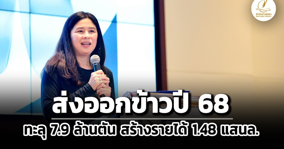 ‘พาณิชย์’ เผยตัวเลขส่งออกข้าวไทยปี 68 ทะลุ 7.9 ล้านตัน สร้างรายได้เข้าประเทศ 1.48 แสนล้าน พร้อมคาดส่งออกข้าวปีนี้ 7 ล้านตัน แม้เผชิญปัจจัยลบ ‘อินโดนีเซีย’ นำเข้าข้าวน้อยลง-ค่าเงินบาทแข็ง-ต้นทุนค่าขนส่งเพิ่ม