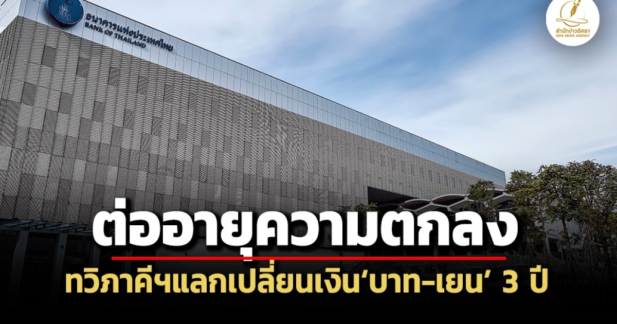 เมื่อวันที่ 30 มี.ค. รายงานข่าวจากธนาคารแห่งประเทศไทย (ธปท.) แจ้งว่า ธปท. และธนาคารกลางญี่ปุ่นได้ต่ออายุความตกลงทวิภาคีว่าด้วยการแลกเปลี่ยนเงินตราสกุลท้องถิ่นออกไปอีก 3 ปี จนถึงวันที่ 30 มี.ค.2572