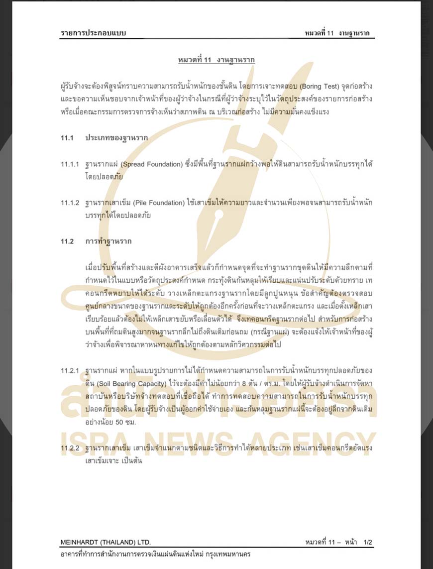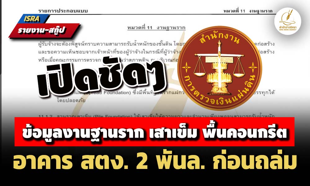 สำหรับข้อมูลงานวิศวกรรมโครงสร้างในส่วนงานฐานราก เสาเข็มตอก งานพื้นคอนกรีตอัดแรง ของ อาคารที่ทำการสำนักงานตรวจเงินแผ่นดิน (สตง.) แห่งใหม่ ที่สำนักข่าวอิศรา ตรวจสอบพบล่าสุด และนำเสนอไปข้างต้น