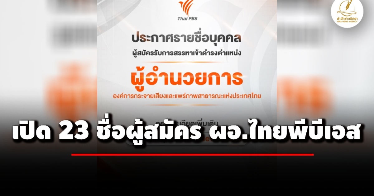 เปิด 23 ชื่อผู้สมัครตำแหน่ง ผู้อำนวยการองค์การกระจายเสียงและแพร่ภาพสาธารณะแห่งประเทศไทย : Thai PBS