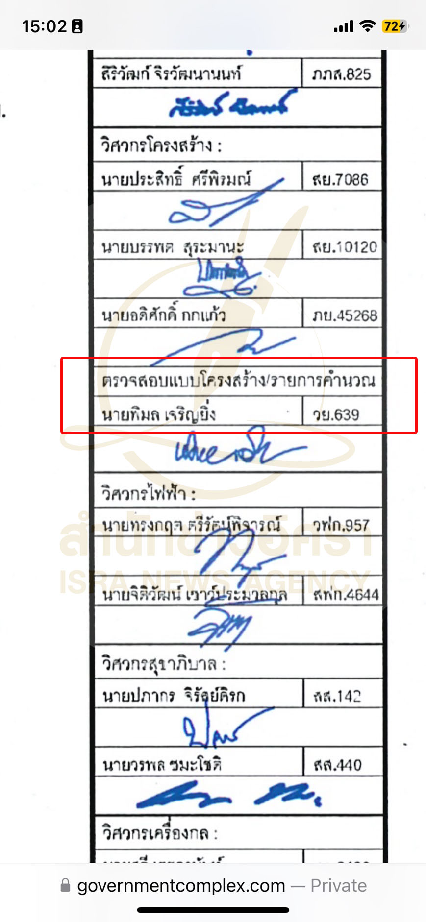- ดีเอสไอได้ชื่อวิศวกรออกแบบตึก สตง.แล้วอายุ 85 ปี -ยังไม่เจอตัว3ผู้ถือหุ้นไทยบ.ไชน่าฯ