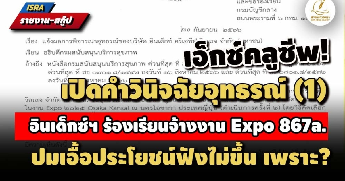 • เปิดคำวินิจฉัยอุทธรณ์ (1) อินเด็กซ์ฯร้องเรียนจ้างงานExpo 867ล.ปมเอื้อปย.ฟังไม่ขึ้นเพราะ?