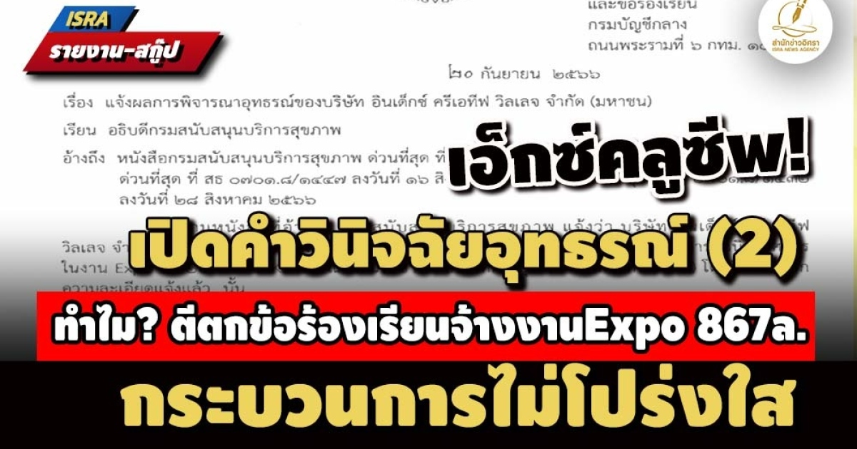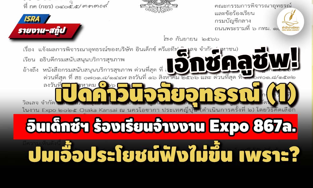 - ชัดแล้ว! อินเด็กซ์ฯ คู่แข่งจ้างงาน Expo 867ล.ยื่นอุทธรณ์ผลประมูล 'บิ๊ก สบส.' เรียกเคลียร์