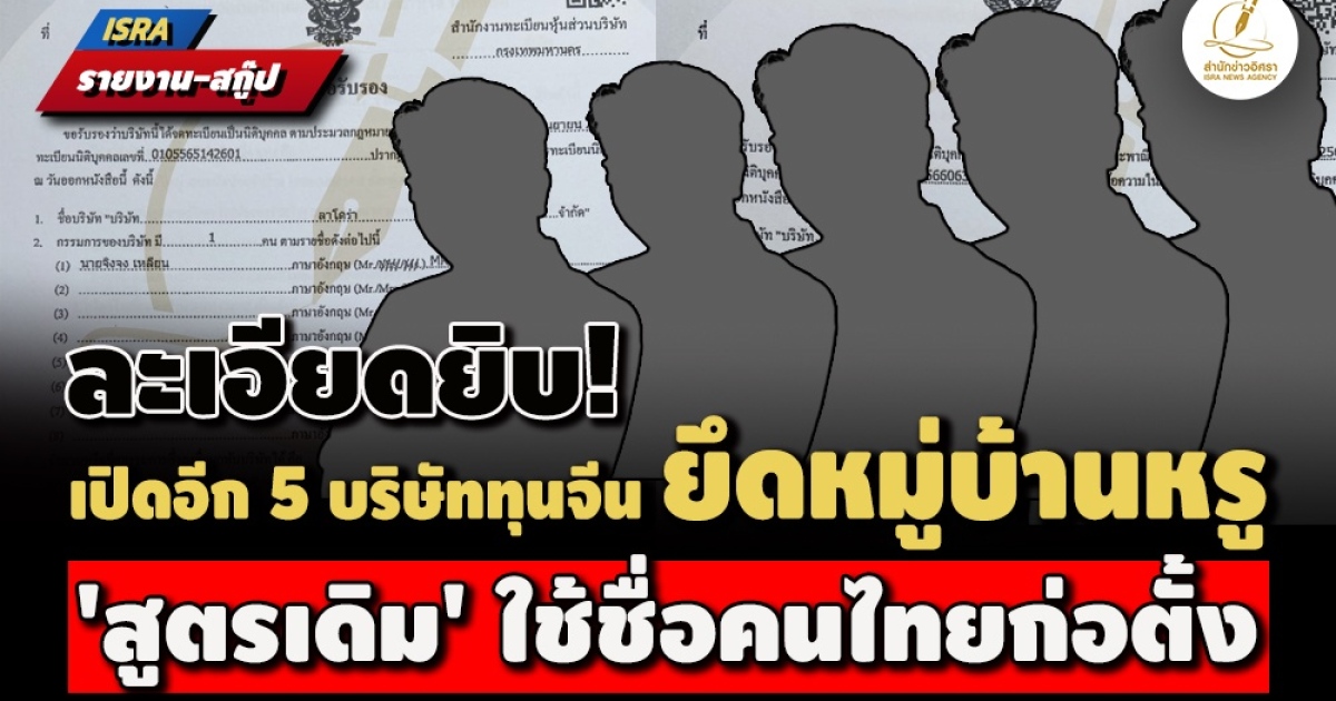 - เปิดชุดใหม่! อีก 5 บริษัททุนจีนในหมู่บ้านหรู รูปแบบเดิม คนไทยจดฯก่อตั้งก่อนโอนหุ้น