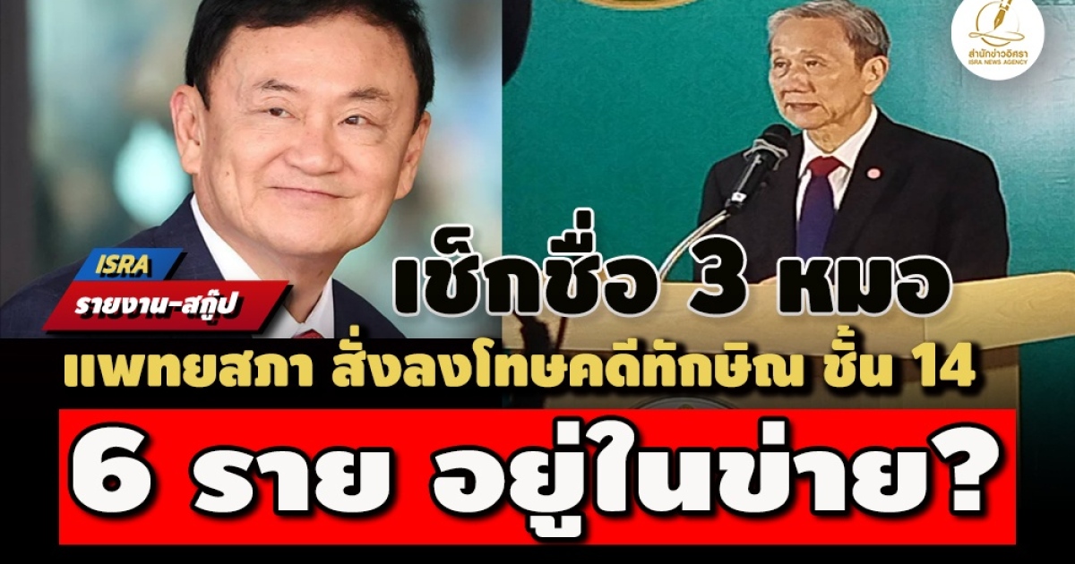 คดีทักษิณ ชั้น 14! แพทยสภา สั่งลงโทษ 3 หมอ ตักเตือน 1 พักใบอนุญาต 2