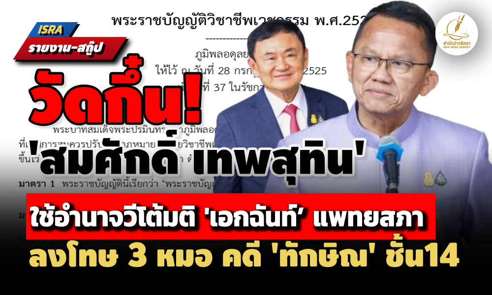 - วัดกึ๋น 'สมศักดิ์ เทพสุทิน’ ใช้อำนาจวีโต้มติเอกฉันท์แพทยสภา ลงโทษ 3 หมอ คดีทักษิณชั้น14