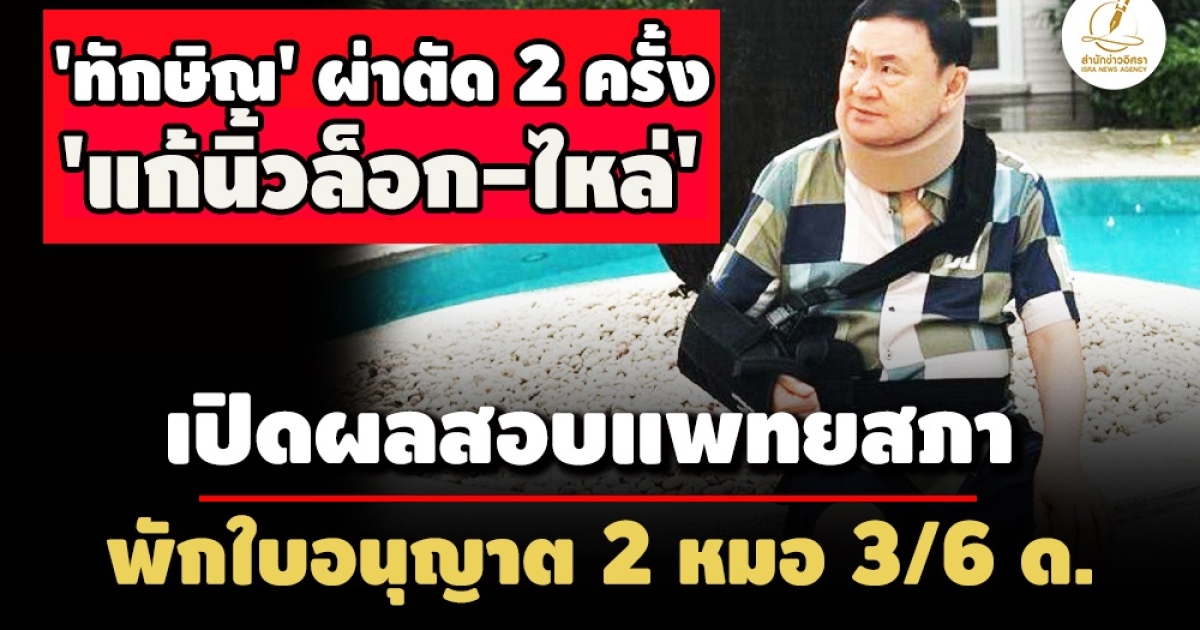 • เปิดผลสอบแพทยสภา พักใบอนุญาต 2 หมอ 3/6 ด.- ทักษิณ ผ่าตัด 2 ครั้ง 'แก้นิ้วล็อก-ไหล่'