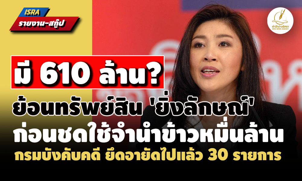 จากข้อมูลดังกล่าว ถ้าทรัพย์สินของ น.ส.ยิ่งลักษณ์ ที่หลบหนีคดีปล่อยปละละเลยให้เกิดความเสียหายในโครงการรับจำนำข้าว ที่ศาลฎีกาฯพิพากษาโทษจำคุก 5 ปี ไปอยู่ต่างประเทศ นับตั้งแต่ปี 2560 จนถึงปัจจุบัน 2568 ไม่มีอะไรเปลี่ยนแปลง เท่ากับว่ามีทรัพย์สินมูลค่า ประมาณ 610 ล้านบาท เทียบกันไม่ได้เลยกับค่าความเสียหายที่ต้องชดใช้ในโครงการรับจำนำข้าว ที่ถูกเรียกเก็บ